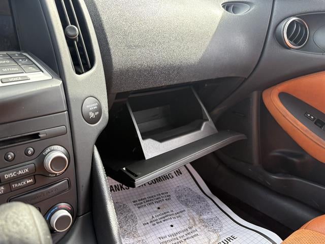 Clean CARFAX 12V Power Outlet(s), 150 Amps Alternator, 2 Front Headrests, 2 One-touch Windows, 2 Subwoofer, 3.7L V6 332hp 270ft. lbs., 4 Driver Seat Power Adjustments, 4 Passenger Seat Power Adjustments, 4-wheel ABS, 6 Disc In-Dash CD, 6-Speed Manual, 8 Total Speakers, Adjustable Front Headrests, Alarm Anti-theft System, Aluminum Alloy Wheels, Aluminum Door Handle Color, Aluminum Foot Pedal Trim, AM/FM Radio, Auto-dimming Rearview Mirror, Auto-locking Power Door Locks, Automatic Climate Control Front Air Conditioning, Battery Saver, Bluetooth® Wireless Data Link, Body-color Mirror Color, Bose Premium Brand, Braking Assist, Bucket Front Seat Type, Cargo Cover, Child Seat Anchors, Coil Front Spring Type, Coil Rear Spring Type, Cruise Control Steering Wheel Mounted Controls, Double Wishbone Front Suspension Type, Dual Front Active Head Restraints, Dual Front Airbags, Dual Illuminating Vanity Mirrors, Dual Tip Exhaust, Electronic Brakeforce Distribution, Faux Suede Door Trim, Faux Suede Upholstery Accents, Folds Flat Passenger Seat Folding, Front Crumple Zones, Front Cupholders, Front Reading Lights, Front Seatbelt Force Limiters, Front Seatbelt Pretensioners, Front Side Airbags, Front Side Curtain Airbags, Front Stabilizer Bar, Front Struts, Gas Front Shock Type, Gas Rear Shock Type, HID/Xenon Headlights, Homelink - Garage Door Opener Universal Remote Transmitter, In Dash Storage, Independent Front Suspension Classification, Independent Rear Suspension Classification, Jack Auxiliary Audio Input, Keyless Entry Multi-function Remote, Leather Parking Brake Trim, Leather Shift Knob Trim, Leather Steering Wheel Trim, Leather Upholstery, LED Taillights, Lumbar Driver Seat Manual Adjustments, Maintenance Due Warnings And Reminders, MP3 Playback In-Dash CD, Multi-function Display, Multi-link Rear Suspension Type, Occupant Sensing Passenger Airbag Deactivation, Polished Aluminum Exhaust Tip Color, Power Side Mirror Adjustments, Power Steering, Push-button Start, Radio Data System, Rear Crumple Zones, Rear Stabilizer Bar, Remotely Operated Power Windows, RWD, Safety Reverse Power Windows, Seatback Storage, Single Front Air Conditioning Zones, SiriusXM Satellite Radio, Solar-tinted Glass, Stability Control, Tachometer Gauge, Temporary Spare Tire Size, Tilt Steering Wheel, Tire Pressure Monitoring System, Traction Control, Variable Intermittent Front Wipers, Vehicle Immobilizer Anti-theft System, Ventilated Disc Front Brake Type, Ventilated Disc Rear Brake Type, Voice Operated Hands-free Phone Call Integration Experience pure driving excitement with this Black 2009 Nissan 370Z Touring Coupe, equipped with a 6-speed manual transmission and legendary 3.7L V6 engine producing 332hp. This sports coupe features luxurious leather and faux suede-trimmed seats, Bose premium audio, Bluetooth® wireless connectivity, SiriusXM Satellite Radio, and a 6-disc CD changer. Enjoy HID/Xenon headlights, polished aluminum exhaust tips, aluminum alloy wheels, and push-button start for a modern touch. Safety comes standard with 4-wheel ABS, traction control, stability control, multiple airbags, and a vehicle immobilizer anti-theft system. Comfort is elevated with automatic climate control, power-adjustable seats, Homelink universal remote, and cruise control. The 370Z's iconic rear-wheel drive and double wishbone front suspension deliver thrilling performance and precise handling. Don't miss out-this well-maintained classic sports car is ready for its next adventure.