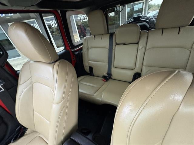 115V Front Power Outlet(s), 12V Cargo Area Power Outlet(s), 12V Front Power Outlet(s), 17 X 7.5 IN. BLACK WHEELS W/ POLISHED LIPS, 2 Front Headrests, 2 One-touch Windows, 220 Amps Alternator, 3 Rear Headrests, 3-point Front Seatbelts, 3-point Rear Seatbelts, 3.6L V6 285hp 260ft. lbs., 4 Passenger Seat Manual Adjustments, 4-wheel ABS, 4X4, 6 Driver Seat Manual Adjustments, 60-40 Split Bench Rear Seat Type, 600 CCA Battery Rating, 7 In. Infotainment Screen Size, 7 In. Instrument Cluster Screen Size, 8 Total Speakers, 8-Speed Shiftable Automatic, 8.4 IN. RADIO AND PREMIUM AUDIO GROUP, Adjustable Front Headrests, Air Filtration, Alarm Anti-theft System, ALPINE PREMIUM AUDIO SYSTEM, Aluminum Alloy Spare Wheel Type, AM/FM Radio, Ambient Lighting, Android Auto Smartphone Integration, Anti-lockout Power Door Locks, Apple CarPlay Smartphone Integration, Audio Steering Wheel Mounted Controls, Auto Delay Off Headlights, Auto On/off Headlights, Auto Start/stop, Auto-locking Power Door Locks, Automatic Climate Control Front Air Conditioning, Auxiliary Oil Cooler, BLACK 3-PIECE HARD TOP, Black Door Handle Color, Black Fender Lip Moldings, Black Front Bumper Color, Black Mirror Color, Black Rear Bumper Color, Black Window Trim, Bluetooth® Auxiliary Audio Input, Body-color Grille Color, Braking Assist, Bucket Front Seat Type, Cargo Area Floor Mat, Carpet Floor Mat Material, Child Safety Door Locks, Clock, Cloth Upholstery, Coil Front Spring Type, Coil Rear Spring Type, Compass, Coolant Temperature Warning Warnings And Reminders, Cruise Control, Cruise Control Steering Wheel Mounted Controls, Customizable Instrument Cluster, Daytime Running Lights, Digital Odometer, Disc Rear Brake Type, Diversity Antenna Type, Door Pockets Storage, Drive Mode Selector, Dual Front Airbags, Dual Illuminating Vanity Mirrors, Electronic Brakeforce Distribution, External Temperature Display, Foldable Rear Headrests, Footwell Lights, Front Assist Handle, Front Console With Armrest And Storage Center Console, Front Crumple Zones, Front Cupholders, Front Emergency Locking Retractors, Front Floor Mats, Front Fog Lights, Front Locking Differential, Front Reading Lights, Front Seatback Storage, Front Seatbelt Force Limiters, Front Seatbelt Pretensioners, Front Seatbelt Warning Sensor, Front Side Airbags, Front Skid Plate(s), Front Stabilizer Bar, Front Tow Hooks, Full-size Matching Spare Tire Size, Garage Door Opener Universal Remote Transmitter, Halogen Headlights, Heated Side Mirrors, Height Driver Seat Manual Adjustments, Hill Holder Control, Illuminated Cupholders, In Dash Rearview Monitor, IPod/iPhone Auxiliary Audio Input, Jack Auxiliary Audio Input, Keyless Entry Multi-function Remote, Lamp Failure Warnings And Reminders, LATCH System Child Seat Anchors, Leather Steering Wheel Trim, LEATHER-TRIMMED BUCKET SEATS, LED LIGHTING GROUP, Lockout Button Power Windows, Low Fuel Level Warnings And Reminders, Low Oil Pressure Warnings And Reminders, Lumbar Driver Seat Manual Adjustments, Maintenance Due Warnings And Reminders, Maintenance-free Battery, Manual Day/night Rearview Mirror, Manual Folding Side Mirror Adjustments, Manual Hi-lo 4WD Selector, MANUFACTURERS STATEMENT OF ORIGIN, Mast Antenna Type, Metallic-tone Interior Accents, Monotube Front Shock Type, Monotube Rear Shock Type, MOPAR HARD TOP HEADLINER, MPG Fuel Economy Display, Multi-function Steering Wheel Mounted Controls, Multi-link Front Suspension Type, Occupant Sensing Passenger Airbag Deactivation, Outside Spare Tire Mount Location, Part Time 4WD Type, Phone Steering Wheel Mounted Controls, Power Brakes, Power Side Mirror Adjustments, Power Steering, Power Windows, Push-button Start, QUICK ORDER PACKAGE 24R, Radio Data System, Range Fuel Economy Display, Rear Crumple Zones, Rear Cupholders, Rear Floor Mats, Rear Locking Differential, Rear Reading Lights, Rear Seat Folding, Rear Skid Plate(s), Rear Stabilizer Bar, Rear Tow Hooks, Rearview Camera System, Reclining Driver Seat Manual Adjustments, Reclining Passenger Seat Manual Adjustments, Reclining Rear Seat Manual Adjustments, REMOTE START SYSTEM, Roll Stability Control, Rubber/vinyl Floor Material, SAFETY GROUP, Side-hinged Rear Trunk/liftgate, Single Front Air Conditioning Zones, SiriusXM Satellite Radio, Soft Top Removable Roof, Solar-tinted Glass, Solid Live Axle Front Suspension Classification, Solid Live Axle Rear Suspension Classification, Speed Sensitive Volume Control, Stability Control, STEEL BUMPER GROUP, Tachometer Gauge, Tilt And Telescopic Steering Wheel, Tire Pressure Monitoring System, Touch Screen Display Radio, Traction Control, Trailer Stability Control, TRAILER TOW AND HD ELECTRICAL GROUP, Trailing Arms Rear Suspension Type, Trip Odometer, Uconnect Infotainment, Urethane Shift Knob Trim, USB Auxiliary Audio Input, Variable Intermittent Front Wipers, Vehicle Immobilizer Anti-theft System, Ventilated Disc Front Brake Type, Voice Control Steering Wheel Mounted Controls, Voice Operated Radio Conquer any terrain with this rugged Red 2018 Jeep Wrangler Unlimited Rubicon 4x4! This midyear release is built for adventure with the legendary 3.6L V6 engine, 8-speed shiftable automatic transmission, and robust 4X4 capability. Enjoy premium features like the Uconnect infotainment system with a 7-inch touchscreen, Apple CarPlay and Android Auto, Bluetooth®, and SiriusXM radio. Stay comfortable with automatic climate control, leather-trimmed bucket seats, and a removable Black 3-piece hard top. Off-road ready with the Steel Bumper Group, Trailer Tow and HD Electrical Group, front and rear locking differentials, skid plates, and monotube shocks. Safety is covered with the Safety Group, rearview camera, front/rear crumple zones, and advanced airbags. This Wrangler also boasts Alpine premium audio, remote start, LED lighting, and Quick Order Package 24R. With classic Jeep style, 17-inch black wheels with polished lips, and a host of tech, comfort, and convenience features, this Rubicon is ready for your next adv