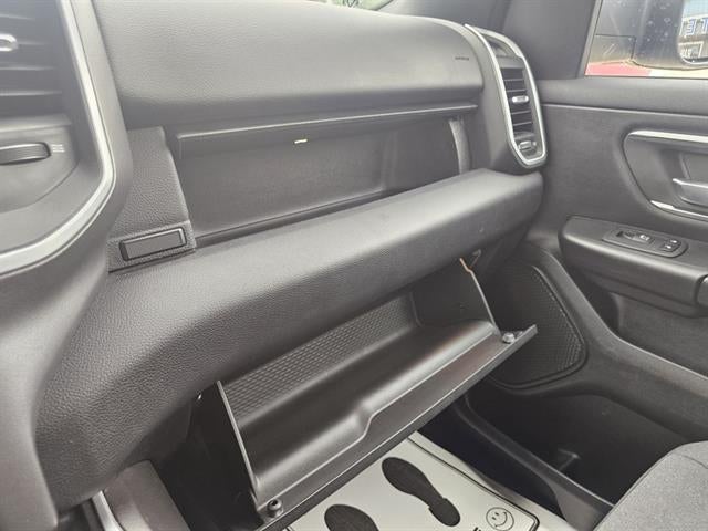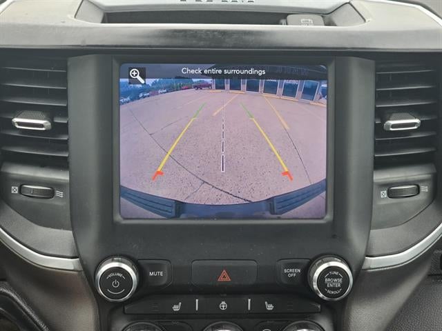 115V Auxiliary Power Outlet, 3 Rear Seat Head Restraints, 3.21 Rear Axle Ratio, 4 Way Front Headrests, 4-Wheel Disc Brakes, 40/20/40 Split Bench Seat, 400W Inverter, 48V Belt Starter Generator, 6 Speakers, ABS brakes, Air Conditioning, Alloy wheels, AM/FM radio, Anti-Spin Differential Rear Axle, Big Horn Level 2 Equipment Group, Black Exterior Mirrors, Brake assist, Bumpers: chrome, Cloth Bench Seat, Compass, Delay-off headlights, Deluxe Cloth Bucket Seats, Driver door bin, Dual front impact airbags, Dual front side impact airbags, Electronic Stability Control, Front anti-roll bar, Front Center Armrest w/Storage, Front fog lights, Front reading lights, Front Seat Back Map Pockets, Front wheel independent suspension, Fully automatic headlights, GPS Antenna Input, Heated door mirrors, Illuminated entry, Integrated Voice Command w/Bluetooth®, Leather steering wheel, Low tire pressure warning, Manufacturer's Statement of Origin, Night Edition, Occupant sensing airbag, Outside temperature display, Overhead airbag, Overhead console, Panic alarm, ParkSense Front/Rear Park Assist w/Stop, ParkView Rear Back-Up Camera, Passenger door bin, Passenger vanity mirror, Power door mirrors, Power steering, Power windows, Quick Order Package 27Z Big Horn, Radio data system, Radio: Uconnect 3 w/5" Display, Radio: Uconnect 4 w/8.4" Display, Rear 60/40 Folding Seat, Rear anti-roll bar, Rear seat center armrest, Rear step bumper, Remote keyless entry, Remote Start System, Speed control, Split folding rear seat, Steering wheel mounted audio controls, Tachometer, Telescoping steering wheel, Tilt steering wheel, Traction control, Trip computer, Variably intermittent wipers, Voltmeter, Wheels: 18" x 8" Cast-Aluminum Painted, Wheels: 20" x 9.0" Premium Paint/Polished.
