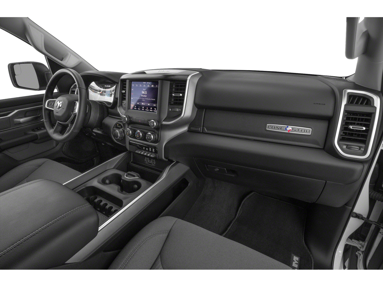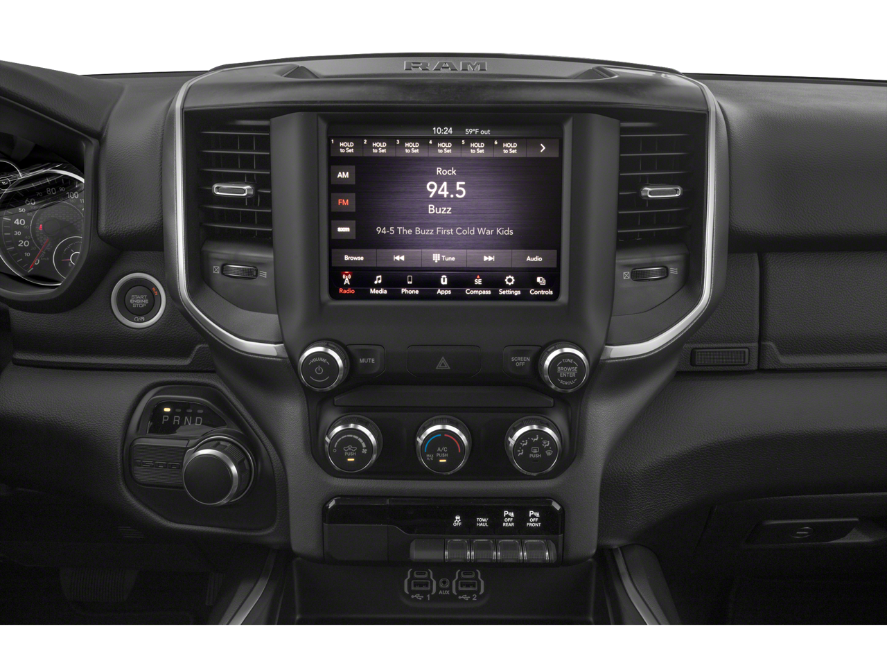 115V Auxiliary Power Outlet, 115V Auxiliary Rear Power Outlet, 2nd Row In Floor Storage Bins, 3 Rear Seat Head Restraints, 4 Way Front Headrests, 4-Wheel Disc Brakes, 40/20/40 Split Bench Seat, 400W Inverter, 48V Belt Starter Generator, 6 Speakers, ABS brakes, Advanced Brake Assist, Air Conditioning, Air Conditioning ATC w/Dual Zone Control, Alloy wheels, AM/FM radio, Auto-Dimming Exterior Driver Mirror, Auto-Dimming Rear-View Mirror, Big Horn Badge, Big Horn Level 2 Equipment Group, Black Exterior Mirrors, Black Premium Power Mirrors, Brake assist, Bumpers: chrome, Class IV Receiver Hitch, Cloth Bench Seat, Cluster 3.5 TFT Color Display, Cluster 7.0 TFT Color Display, Compass, Delay-off headlights, Driver door bin, Dual front impact airbags, Dual front side impact airbags, Electronic Stability Control, Exterior Mirrors Courtesy Lamps, Exterior Mirrors w/Supplemental Signals, Foam Bottle Insert (Door Trim Panel), For More Info, Call 800-643-2112, Front anti-roll bar, Front Center Armrest w/Storage, Front fog lights, Front License Plate Bracket, Front reading lights, Front Seat Back Map Pockets, Front wheel independent suspension, Full Speed Forward Collision Warning Plus, Fully automatic headlights, Glove Box Lamp, GPS Antenna Input, Heated door mirrors, Heated Front Seats, Heated Steering Wheel, Illuminated entry, Integrated Voice Command w/Bluetooth®, Lane Keep Assist, Leather steering wheel, Level 1 Safety Group, Low tire pressure warning, Manufacturer's Statement of Origin, Media Hub w/2 Charge Only USBs, Occupant sensing airbag, Outside temperature display, Overhead airbag, Overhead console, Panic alarm, ParkSense Front/Rear Park Assist w/Stop, ParkView Rear Back-Up Camera, Passenger door bin, Passenger vanity mirror, Pedestrian Emergency Braking, Power 4-Way Driver Lumbar Adjust, Power 8-Way Driver Seat, Power Adjustable Pedals, Power door mirrors, Power steering, Power windows, Power-Folding Mirrors, Quick Order Package 23Z Big Horn, Quick Order Package 27Z Big Horn, Radio data system, Radio: Uconnect 3 w/5 Display, Radio: Uconnect 4 w/8.4 Display, Rear 60/40 Folding Seat, Rear anti-roll bar, Rear Dome w/On/Off Switch Lamp, Rear Power Sliding Window, Rear seat center armrest, Rear step bumper, Rear Window Defroster, Remote keyless entry, Remote Start System, Security Alarm, SiriusXM Radio Service, Speed control, Split folding rear seat, Steering wheel mounted audio controls, Sun Visors w/Illuminated Vanity Mirrors, Tachometer, Telescoping steering wheel, Tilt steering wheel, Traction control, Trip computer, Universal Garage Door Opener, Variably intermittent wipers, Voltmeter, Wheels: 18 x 8 Cast-Aluminum Painted.