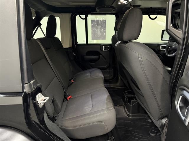 Conquer any terrain in style with this black 2022 Jeep Wrangler Unlimited Willys Sport 4x4 SUV. Built for adventure, it features the powerful 2.0L Turbo I4 engine paired with an 8-speed shiftable automatic transmission and robust part-time 4WD. The Willys Sport is loaded with off-road essentials like front and rear tow hooks, skid plates, rear limited slip differential, and Jeep Trail Rated Kit. Enjoy versatility with the black 3-piece hard top, running boards, and 60/40 split folding rear seat. Stay connected with a 7-inch Uconnect touchscreen, Apple CarPlay, Android Auto, Bluetooth®, and SiriusXM compatibility. Comfort and convenience are enhanced with remote proximity keyless entry, push-button start, cruise control, and multiple USB outlets. Safety comes standard with a rearview camera, traction control, hill holder, trailer stability control, and advanced airbags. The rugged exterior includes black grille, fender flares, and alloy wheels, while the interior is equipped with washable rubber/vinyl floor mats-ready for any adventure.