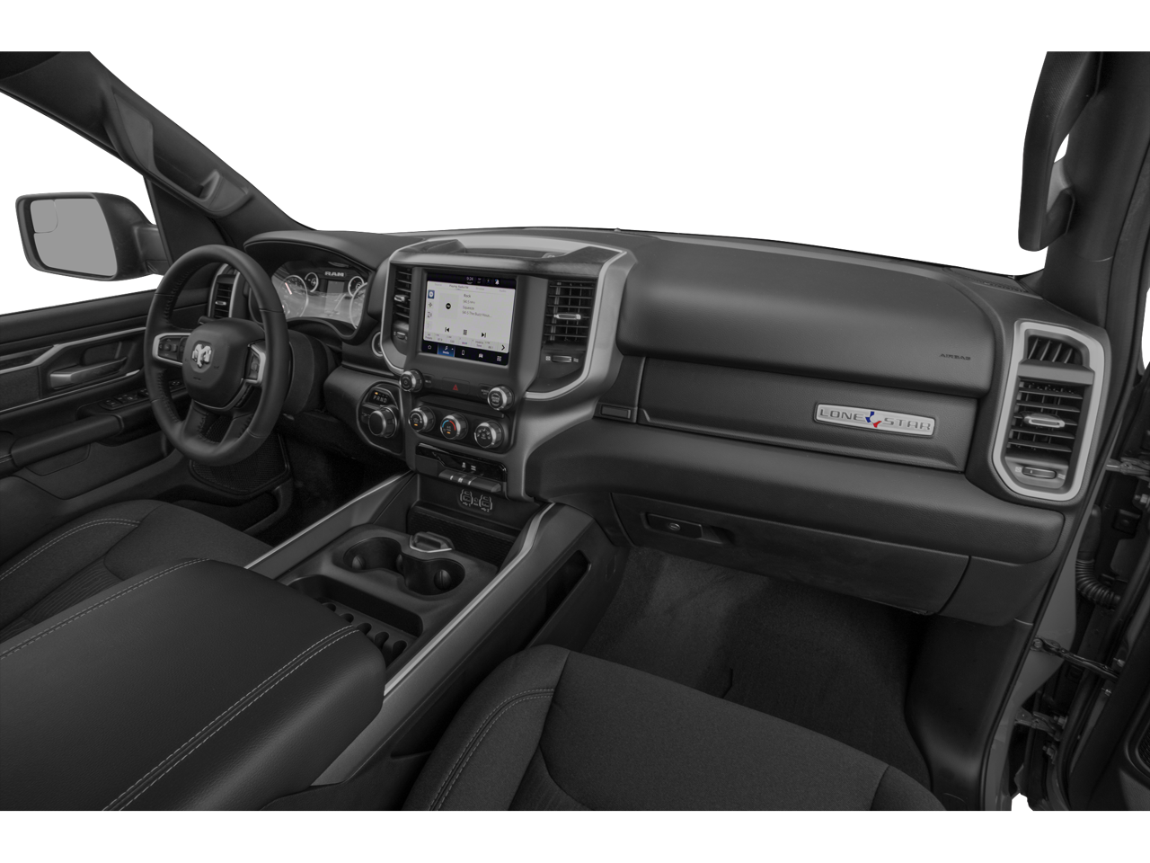 2nd Row In Floor Storage Bins, 3 Rear Seat Head Restraints, 3.21 Rear Axle Ratio, 4 Way Front Headrests, 4-Wheel Disc Brakes, 48V Belt Starter Generator, 4G LTE Wi-Fi Hot Spot, 6 Speakers, 8.4 Touchscreen Display, ABS brakes, Air Conditioning, Alloy wheels, AM/FM radio, Apple CarPlay, Auto-Dimming Exterior Driver Mirror, Auto-Dimming Rear-View Mirror, Big Horn Badge, Big Horn Level 1 Equipment Group, Black Exterior Mirrors, Black Premium Power Mirrors, Bluetooth® Handsfree Phone & Audio, Brake assist, Bumpers: chrome, Class IV Receiver Hitch, Cloth Bench Seat, Cluster 3.5 TFT Color Display, Cluster 7.0 TFT Color Display, Compass, Connected Services Delete Credit, Connectivity - US/Canada, Convex Wide-Angle Mirror Insert, Delay-off headlights, Driver door bin, Dual front impact airbags, Dual front side impact airbags, Electronic Stability Control, Emergency communication system: SiriusXM Guardian, Exterior Mirrors Courtesy Lamps, Exterior Mirrors w/Heating Element, Exterior Mirrors w/Supplemental Signals, For Details, Visit DriveUconnect.com, Front anti-roll bar, Front Center Armrest w/Storage, Front fog lights, Front License Plate Bracket, Front reading lights, Front Seat Back Map Pockets, Front wheel independent suspension, Fully automatic headlights, Global Telematics Box Module (TBM), Glove Box Lamp, Google Android Auto, GPS Antenna Input, Heated door mirrors, Illuminated entry, Integrated Center Stack Radio, Integrated Voice Command w/Bluetooth®, Leather steering wheel, Low tire pressure warning, MOPAR Front & Rear Rubber Floor Mats, Occupant sensing airbag, Outside temperature display, Overhead airbag, Overhead console, Panic alarm, ParkView Rear Back-Up Camera, Passenger door bin, Passenger vanity mirror, Power 2-Way Driver Lumbar Adjust, Power 8-Way Driver Seat, Power Adjustable Pedals, Power door mirrors, Power steering, Power windows, Power-Folding Mirrors, Quick Order Package 23Z Big Horn, Radio data system, Radio: Uconnect 3 w/5 Display, Radio: Uconnect 5 W w/8.4 Display, Rear 60/40 Folding Seat, Rear anti-roll bar, Rear Dome w/On/Off Switch Lamp, Rear Power Sliding Window, Rear seat center armrest, Rear step bumper, Rear Underseat Compartment Storage (DISC), Rear Window Defroster, Remote keyless entry, SiriusXM Radio Service, SiriusXM Satellite Radio, Speed control, Split folding rear seat, Steering wheel mounted audio controls, Sun Visors w/Illuminated Vanity Mirrors, Tachometer, Telescoping steering wheel, Tilt steering wheel, Traction control, Trip computer, Universal Garage Door Opener, USB Host Flip, Variably intermittent wipers, Voltmeter, Wheels: 18 x 8 Cast-Aluminum Painted, Wheels: 20 x 9 Aluminum Chrome Clad (WRK).