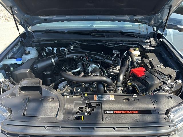 Conquer any terrain in style with this Gray 2024 Ford Ranger Raptor SuperCrew 4x4. Powered by a robust EcoBoost 3.0L Twin Turbo V6 (405hp, 430 ft. lbs.) and paired with a 10-speed shiftable automatic, this truck is engineered for both power and precision. Enjoy advanced off-road capability with off-road tuned suspension, front and rear locking differentials, powertrain and front skid plates, hill descent/ascent assist, and the Watts linkage rear suspension. Inside, experience luxury and technology with leather-trimmed upholstery, heated front seats and steering wheel, a 12-inch infotainment touchscreen with wireless Apple CarPlay and Android Auto, Bang & Olufsen premium audio, and a 12-inch digital instrument cluster. Safety and convenience features include adaptive cruise control, surround view camera, lane centering, trailer backup guidance, blind spot monitoring, rear cross traffic alert, and fully automated active parking system. Additional highlights: spray-in bed liner, power locking tailgate, LED headlights and taillights, FordPass Connect, remote engine start, and running boards. The Raptor Decal and Equipment Group 800A package complete this ultimate adventure-ready truck.