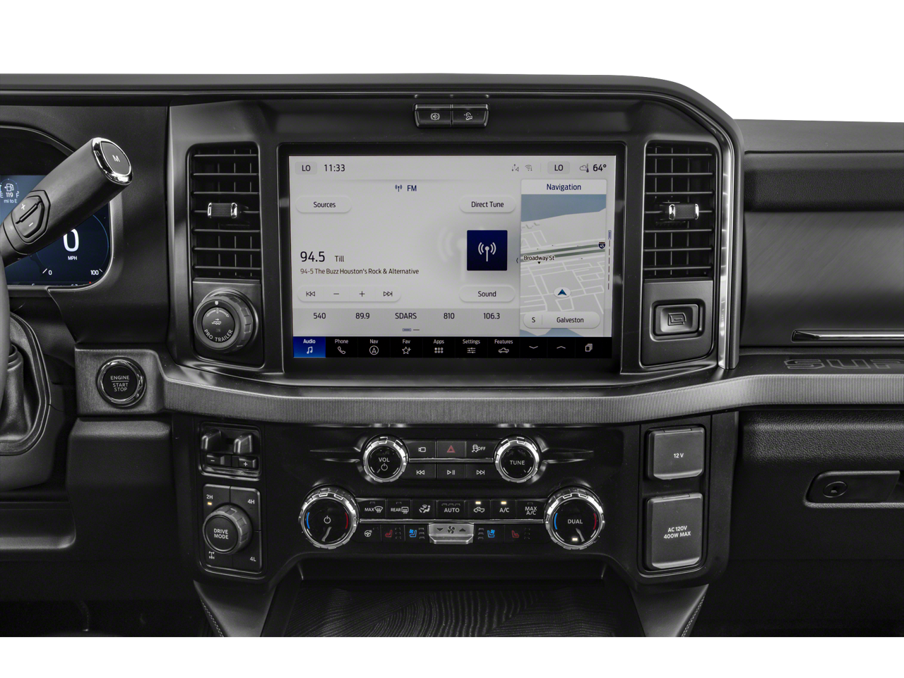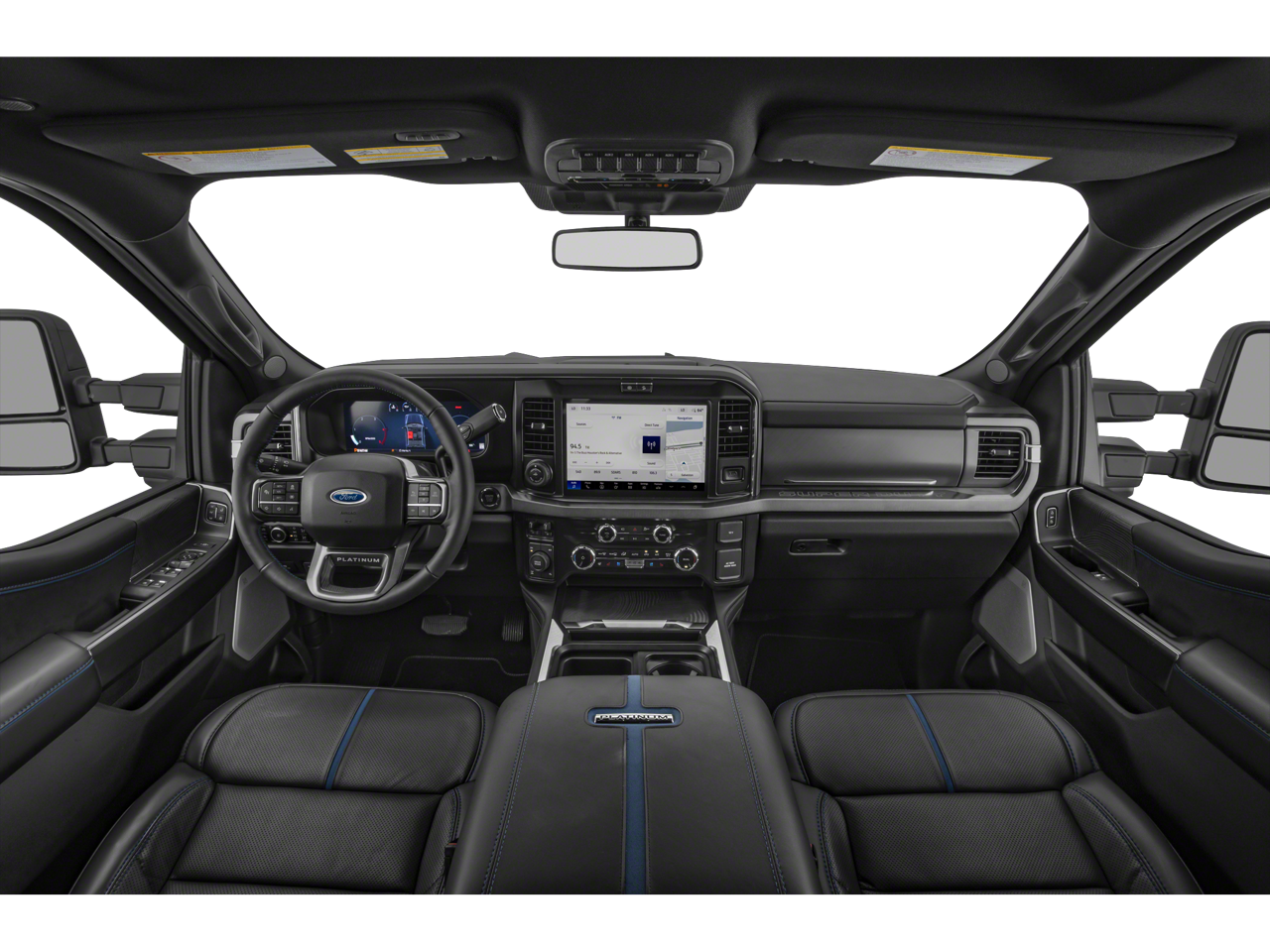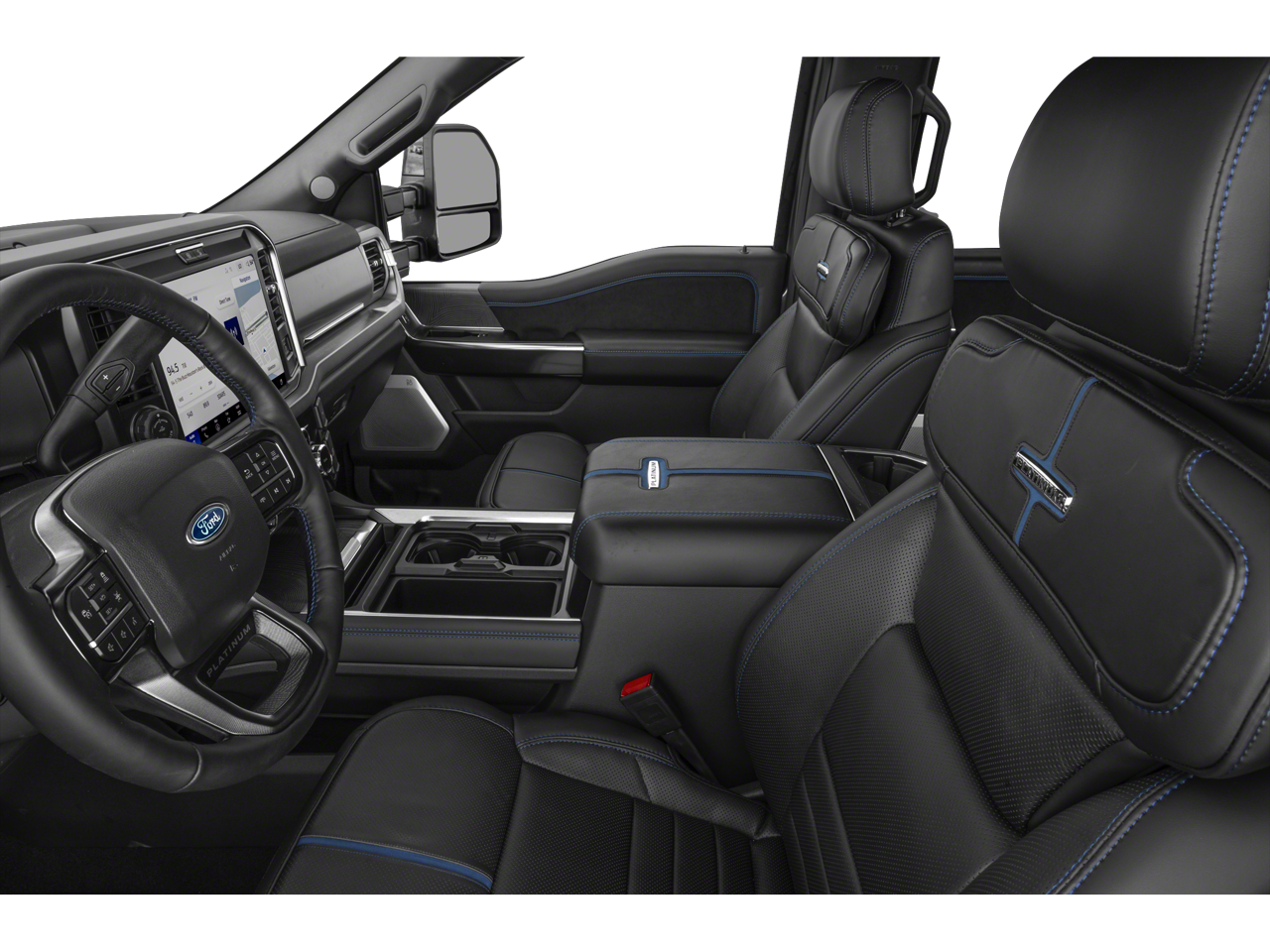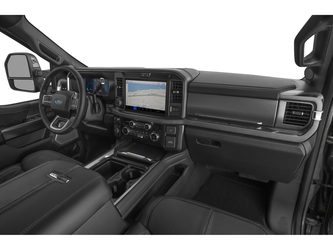 4WD, 14 Speakers, 4-Wheel Disc Brakes, 410 Amp Dual Alternators, ABS brakes, Adjustable pedals, Air Conditioning, Alloy wheels, AM/FM radio: SiriusXM with 360L, Auto High-beam Headlights, Auto tilt-away steering wheel, Auto-dimming Rear-View mirror, Automatic temperature control, Brake assist, Bumpers: body-color, Compass, Delay-off headlights, Driver door bin, Driver vanity mirror, Dual front impact airbags, Dual front side impact airbags, Electronic Stability Control, Emergency communication system: SYNC 4 911 Assist, Flow-Through Console, Ford Connectivity Package (1-Year Included), Ford Connectivity Package (one-Time Purchase - 7 Years), Front and Rear Wheel Well Liners, Front anti-roll bar, Front Bucket Seats, Front Center Armrest, Front dual zone A/C, Front fog lights, Front reading lights, Fully automatic headlights, Garage door transmitter, Heads-Up Display, Heated door mirrors, Heated front seats, Heated rear seats, Heated steering wheel, Illuminated entry, Internet access capable: 5G Modem - Ford Connectivity Package, Leather steering wheel, LED Roof Clearance Lights, Low tire pressure warning, Memory seat, Navigation system: Connected Navigation, Order Code 713A, Outside temperature display, Overhead airbag, Overhead console, Panic alarm, Passenger door bin, Passenger vanity mirror, Pedal memory, Power door mirrors, Power driver seat, Power passenger seat, Power steering, Power windows, Radio: B&O Unleashed Sound System by Bang & Olufsen, Rain sensing wipers, Rapid-Heat Supplemental Cab Heater, Rear reading lights, Rear seat center armrest, Rear step bumper, Rear window defroster, Remote keyless entry, SecuriCode Keyless Entry Keypad (driver's Side), Security system, SiriusXM with 360L, SiriusXM with 360L (3-Year Plan), Speed control, Split folding rear seat, Steering wheel memory, Steering wheel mounted A/C controls, Steering wheel mounted audio controls, SYNC 4 with Enhanced Voice Recognition, Tachometer, Telescoping steering wheel, Tilt steering wheel, Tough Bed Spray-in Bedliner, Traction control, Trip computer, Turn signal indicator mirrors, Twin Panel Power Moonroof, Unique Platinum Leather 40/Console/40 Seats, Variably intermittent wipers, Ventilated front seats, Wheels: 20 Bright Machined and Painted Aluminum, 4WD.